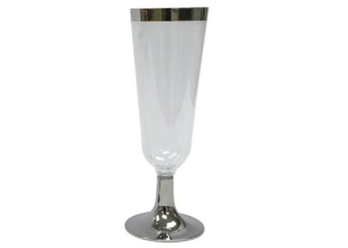 Reflections 2 Piece Plastic Champagne Glass with Silver Base and Trim, 5-Ounce, Clear (96-Count)