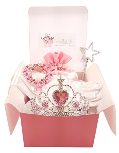 -. Binding : Office Product -. Brand : GavellaGifts -. Color : pink -. Department : girls -. EAN : 0738613685023 -. Feature : Pretty princess accessory set comes packed in a beautiful pink glossy gift box wrapped with white satin ribbon. / INCLUDES plastic silver tiara with pink heart stones, and silver star wand (6.5" long). / Dressy elbow length satin gloves for little girls (15 in x 3 in) packed in a beautiful pink satin bag. / Necklace and bracelet set (pinks & silver), acrylic beads strung on sturdy elastic for easy fit. / Great Party Favors! Buy 4 or more boxes, receive 20% discount (see below) -. IsAdultProduct : 0 -. Label : GavellaGifts -. Manufacturer : GavellaGifts -. MPN : LYSB00VDSBC0K-TOYS -. PackageQuantity : 1 -. PartNumber : LYSB00VDSBC0K-TOYS -. ProductGroup : Toy -. ProductTypeName : TOYS_AND_GAMES -. Publisher : GavellaGifts -. Studio : GavellaGifts -. Title : Little Princess Dress Up Jewelry Accessory Set (6 Piece) - Packed in Pink Gift Box -. UPC : 738613685023