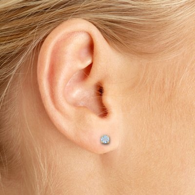 -. Title : 3 mm Petite Round Genuine Aquamarine Stud Earrings in 14k Yellow Gold