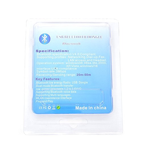 -. Binding : Electronics -. Brand : MAIZI -. EAN : 0721272389647 -. Feature : Fully qualified Bluetooth v4.0 specification system Support for Bluetooth v3.0 only available with CSR8510A10 Dual-mode Bluetooth /Bluetooth low energy / BlueCore CSR8510 A10 WLSCP is a product from CSR's Connectivity Centre. It is a single-chip radio and baseband IC for Bluetooth 2.4 GHz systems including EDR to 3 Mbps / Dedicated signal and baseband processing is included for full Bluetooth operation / CSR designed CSR8510 WLCSP to reduce PCB area and the number of external components , including no requirement for an external balun. This ensures that production costs are minimised / Bluetooth V4.0 Class2 (also compliant Bluetooth 2.1+EDR) OS supported: windows 7, vista, XP -. Label : MAIZI -. Manufacturer : MAIZI -. Model : USB 4.0 Bluetooth -. PackageQuantity : 1 -. ProductGroup : PC Accessory -. ProductTypeName : NETWORKING_DEVICE -. Publisher : MAIZI -. Studio : MAIZI -. Title : MAIZI Mini USB CSR 4.0 Bluetooth Adaptor Wireless Dongle Support Bluetooth Voice and Date Transmission Compatible with Windows 7/vista/XP -. UPC : 721272389647