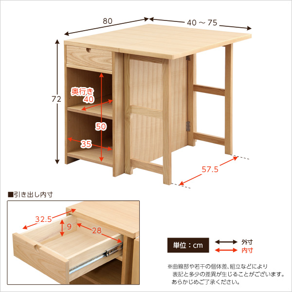 バタフライテーブル【Aperi-アペリ-】(幅75cmタイプ)単品