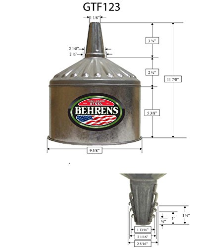 -. Feature : (4) ea Behrens Lock-On, Galvanized Steel Tractor Funnels / 8 Quart Capacity / 2 Way Locking Collar / Galvanized Steel, No Rust Construction / Measures approx 5.375