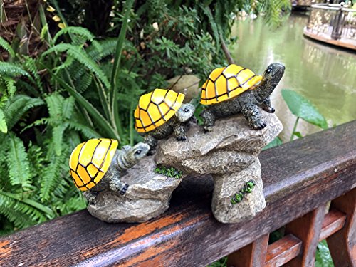 CUTE TURTLE SOLAR GARDEN DECOR: This solar-powered outdoor LED light features three turtles with shells that light up at night to whimsically illuminate your lawn, garden, deck, or patio.