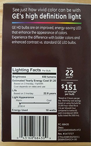 2 Pack GE Lighting Relax LED BR30 Soft White HD Light 10w (65w replacement) 650 Lumens Dimmable 2700K