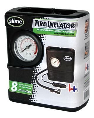 Studio : Slime Publisher : Slime Binding : Sports Product Description Slime is the name brand people know and trust for flat tire prevention and repair. Keep a Slime tire inflator in every vehicle and be prepared to inflate a low tire anytime. There's no need to pull over and find a service station, just reach for a Slime tire inflator, pump up the tire and go. 0