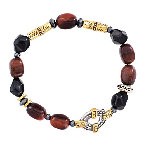 -. Title : Silpada 'Fired Up' Sterling Silver, Brass, Agate, Hematite, and Tiger's Eye Stretch Bracelet, 6.75"