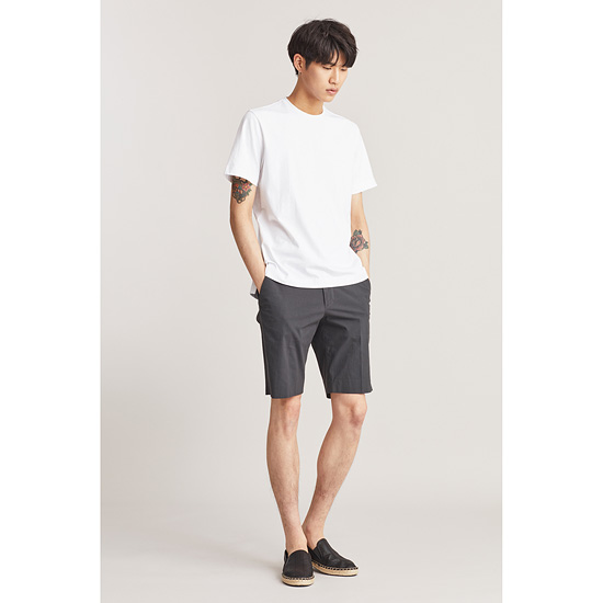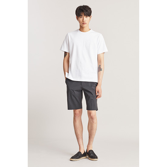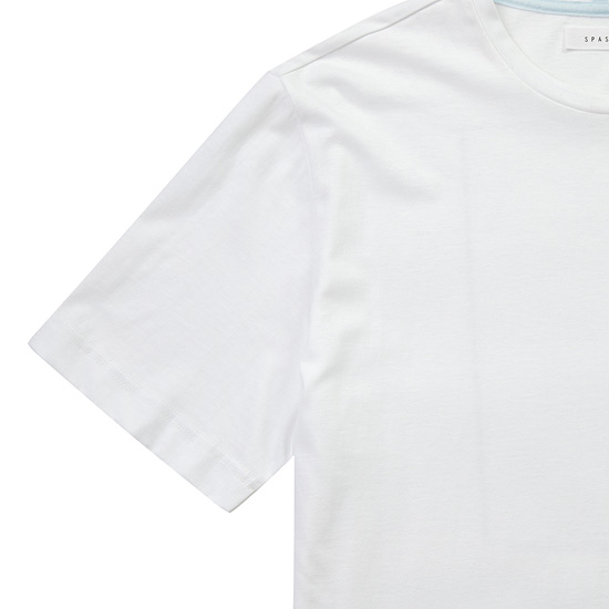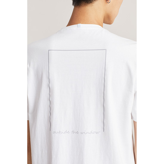 - 베이직한 디자인에 뒷면 배색 프린트로 포인트를 준 남성 티셔츠.