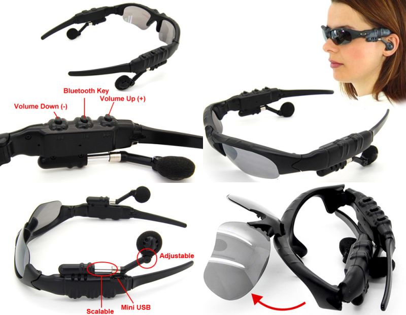 It is a perfect combination of bluetooth headset (single earphone) and Sunglasses.
