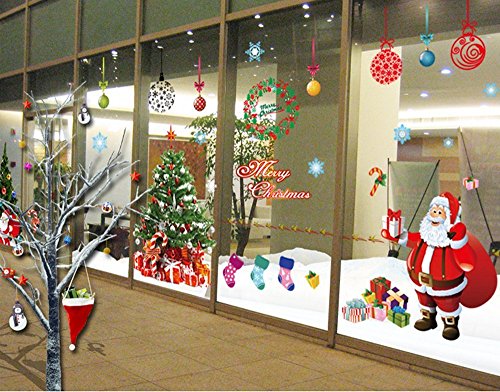 Amaonm Set of 2 Sheets Xlarge Merry Christmas Santa Claus Christmas Tree Christmas Stockings Christmas Gifts Wall Decals Removable Wall Stickers Murals for Living Room Bedroom Shop Window (901A+B)
