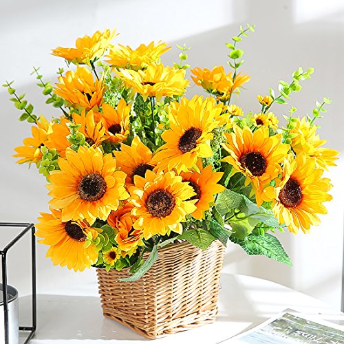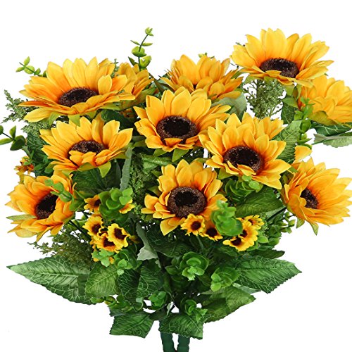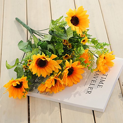 Christmas Flowers ,JUSTOYOU Artificial Silk Autumn Sunflowers Flower Bouquet with Stems for Home Wedding Festival Decor
