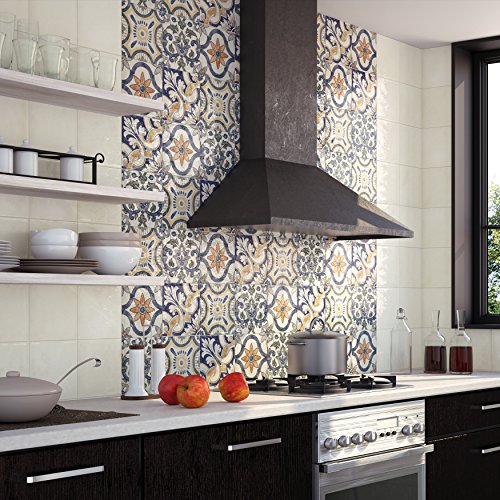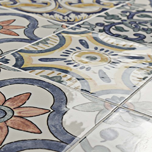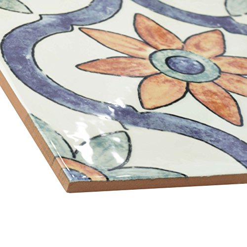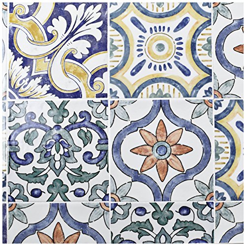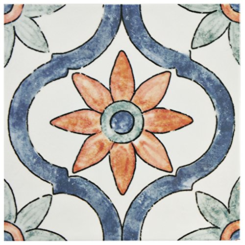 SomerTile WAEBOUAR Loire Ceramic Wall Tile, 7.875" x 7.875", White/Blue/Orange/Green