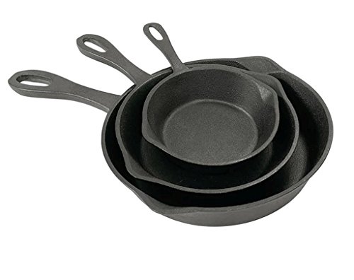 -. Title : Bayou Classic 3-piece Cast Iron Skillet Set , Oven-safe to 750-degrees F ( Material Cast Iron, Metal )
