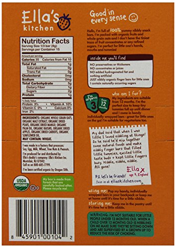 Ella's Kitchen Mangoes + Carrots Nibbly Fingers Whole Grain Oat Finger Bars, 4.4 oz