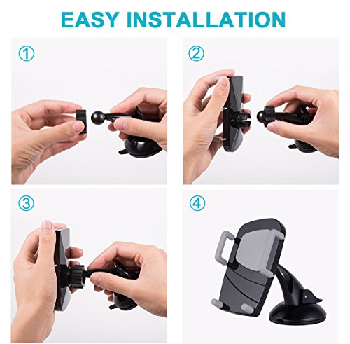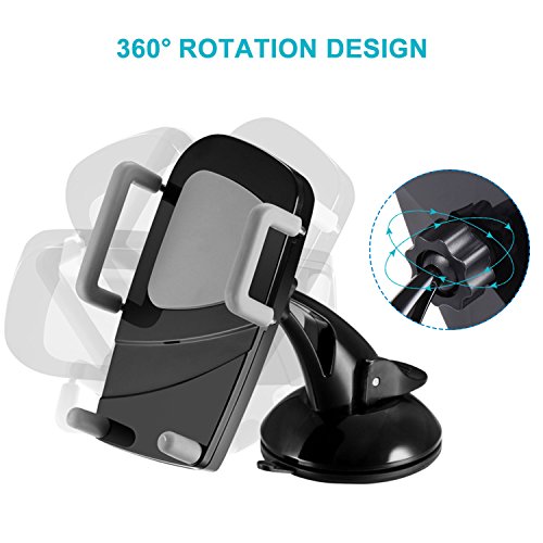 Atill Car Mount Phone Holder, Universal Windshield Dashboard Car Holder with Strong Suction Cup for iPhone 8 Plus/8/7/6S/6 Plus/5S/5/SE, Samsung Galaxy, and other smartphones and GPS devices.