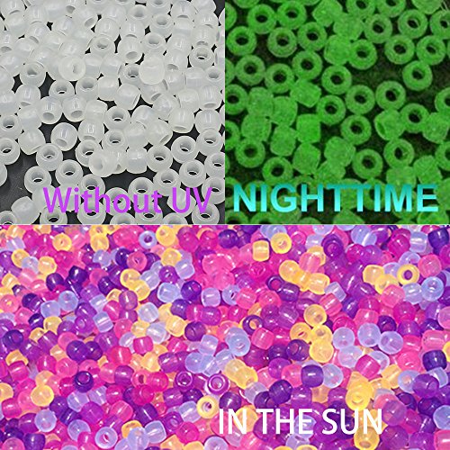 Changes color immediately when exposed to sunlight, even on cloudy and rainy days, The more UV ray, the darker it will be. When the light go out watch these beads glow