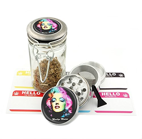 Marilyn Monroe - 42 mm- 4Pcs Small Size Grinder and 75 ml Locking Top Glass Jar Combo Gift Set # GJ42MM-020117-4