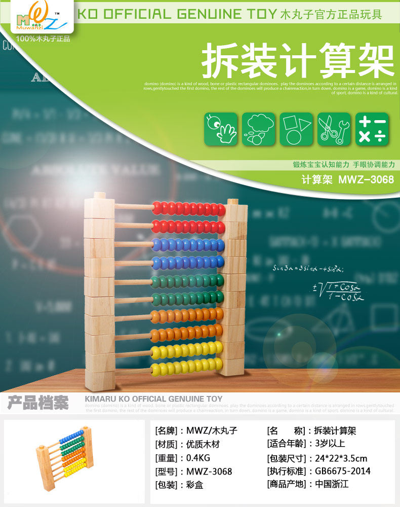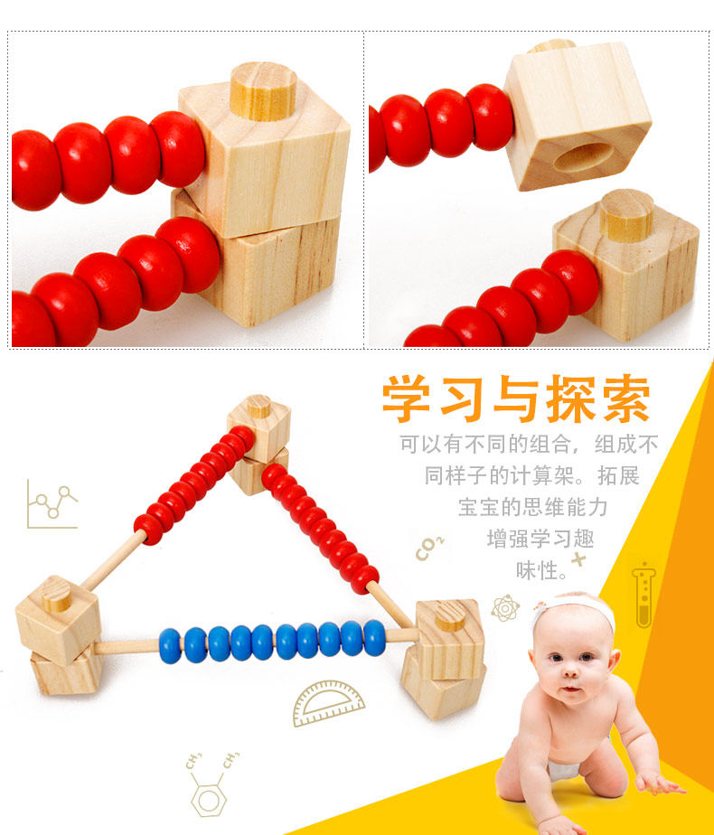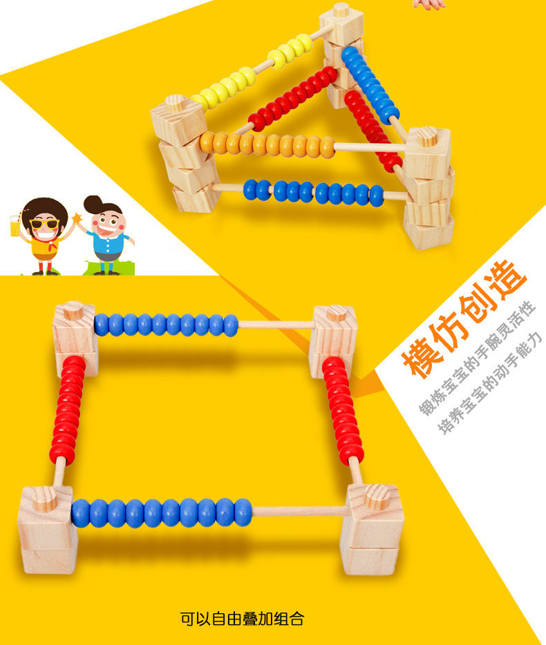 儿童早教益智玩具木质拆装拼装计算架算数算珠3-4-5-6-7岁
