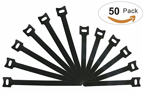 Homga 50 Pack Cable Ties for Organization Management, Hook and Loop Reusable Fastening Black Nylon Cord Cable Wire Straps