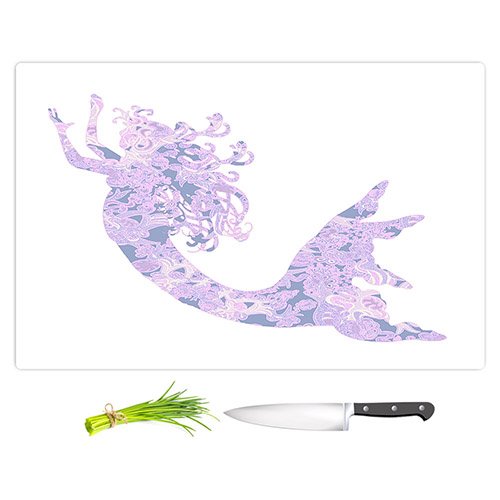 DiaNoche Designs CB-SusieKMermaidWhiteSerenity2 Susie Kunzelman-Mermaid White Serenity Cutting Boards from, Large 15" x 11"