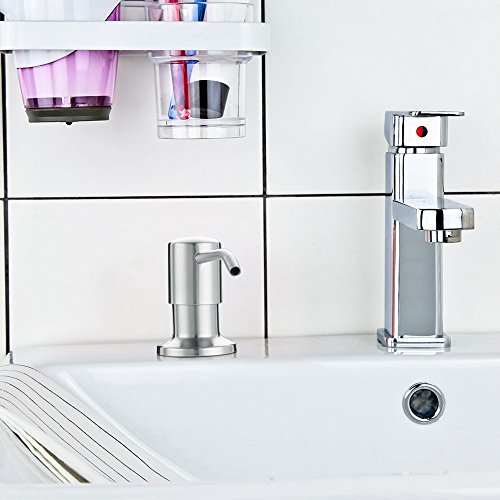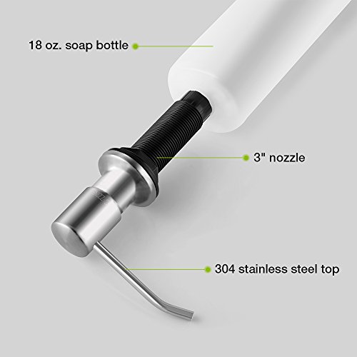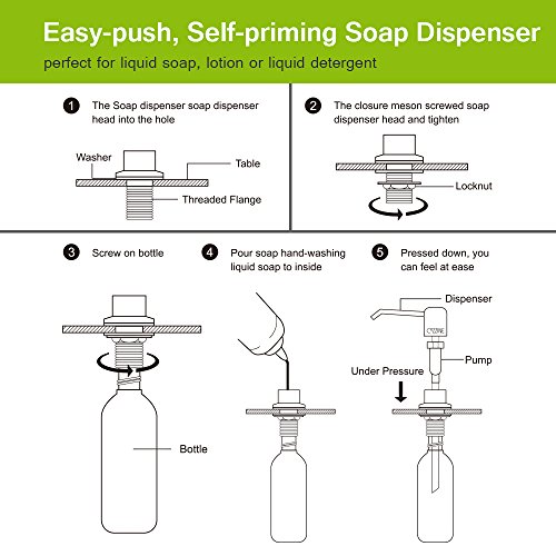 - EASY TO INSTALL AND USE- Easy press dispenser offers an easy-dispensing mechanism. This soap dispenser is extremely easy to install in just a few short minutes, and simply remove the dispenser head and refill with liquid soap-you do not have to remove the bottle.