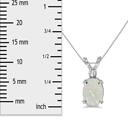 -. Title : 14k White Gold Oval Opal And Diamond Pendant with 18" Chain