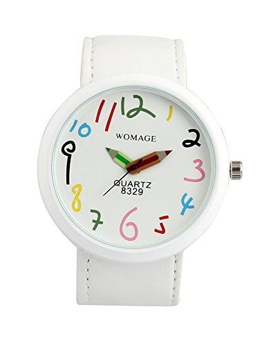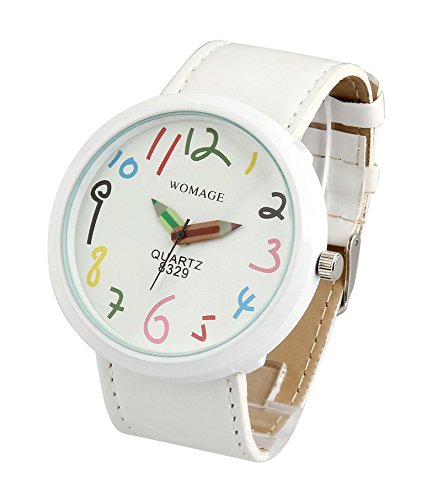 ShoppeWatch Womens White Casual Fun Watch Big Face Unisex Leather Band Reloj Para DAMA SW8329WHWH