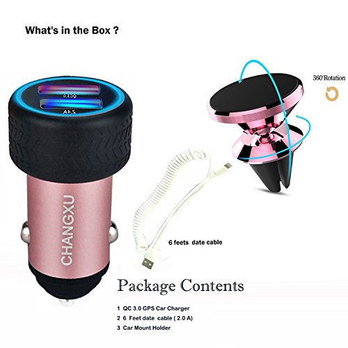 - [GPS CAR CHARGER WITH LENZE APP 4.0 SOC Chip + DUEL USB QC3.0 CHARGES FAST + Universal Smartphone Holder + QC3.0 USB Cable ] One QC 3.0 port and one 5V 1A port for mobile phone ,PC ,table charge fast charging for any mobile device (For optimal use, please charge with an OEM cable or Changxu compatible cable). one rose gold/silver Universal Smartphone Holder for customs use if need Google map for navigate when drive in in strange place at daytime or night .