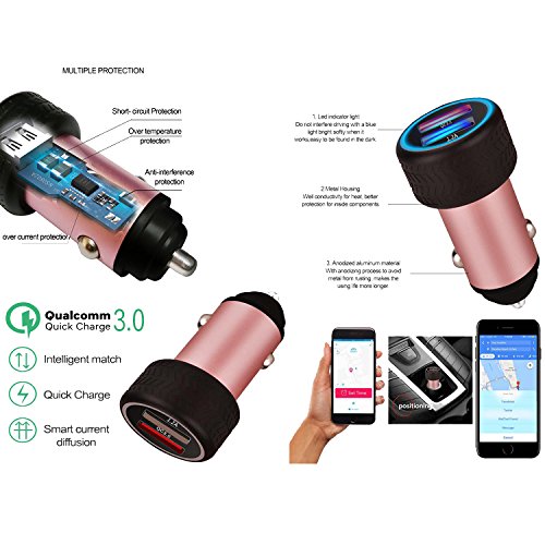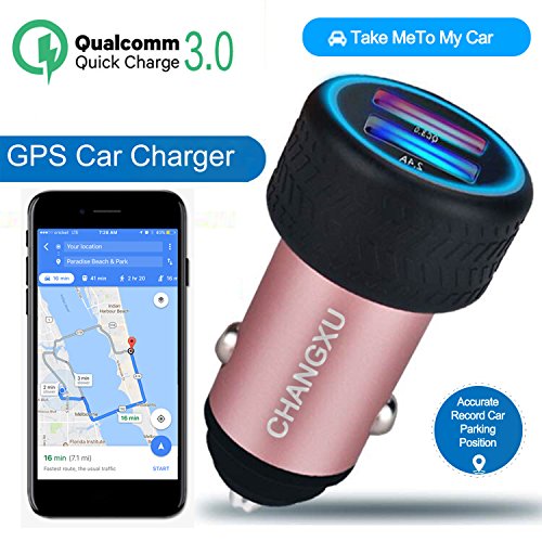 Car Charger GPS Car Charger with Car Positioning QC3.0 Quick Chargers Connected mobile App with Set Parking Time Alarm for Save money and Share Car Location to your Family .(Rose Gold )