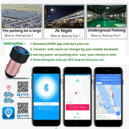 - [INSTANT FINDING CAR & GPS CAR CAHRGER] Are you feel hard to find the car when The parking lot is too large or at night or undergroud garage ? instant finding your car automatic by automatic positioning.No matter where park your car your mobile will automatically record your parking position .When the parking place of weak GPS signals (such as underground or multi-storey parking lot) APP will remind taking pictures at parking lots and set parking time.