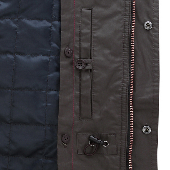 - 광택감이 돋보이는 면혼방 아우터에 이면 탈착