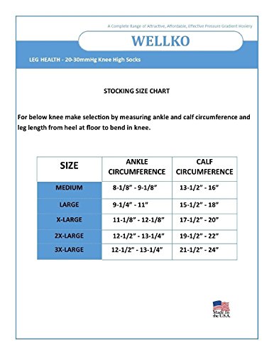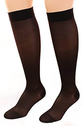 Wellko USA Made Men's Women's Knee High Compression Stockings Socks Sheer Moderate Compression 15-20 [Black, Small]