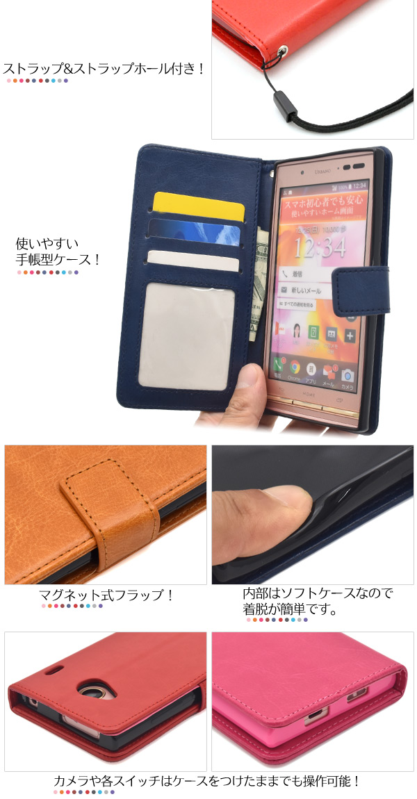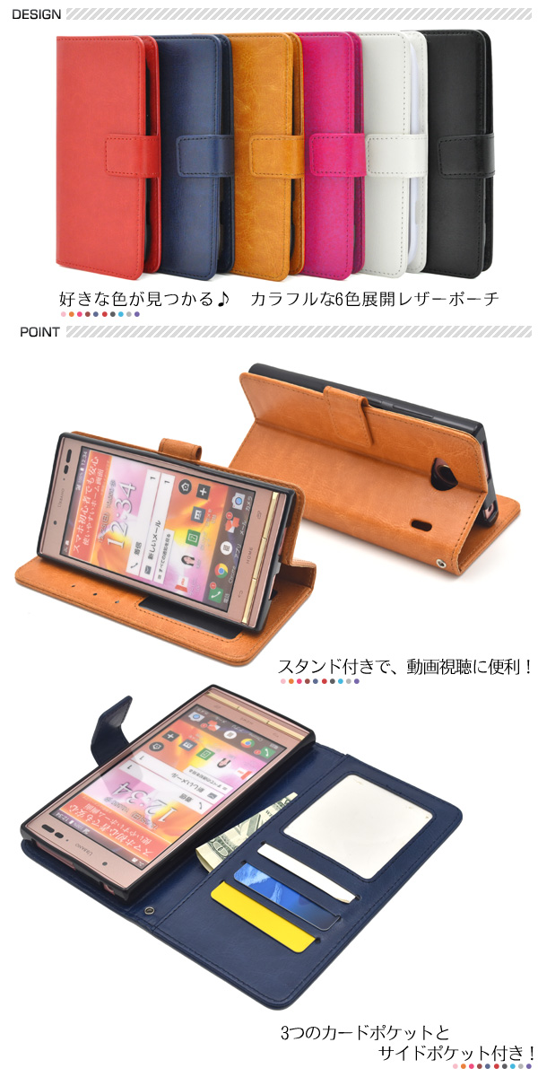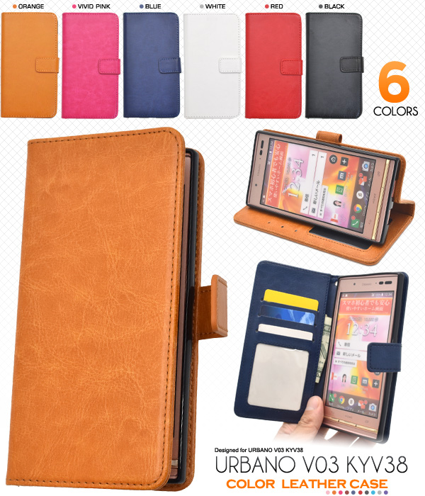 カラフルな6色展開!URBANO V03 KYV38用カラーレザーケースポーチ
