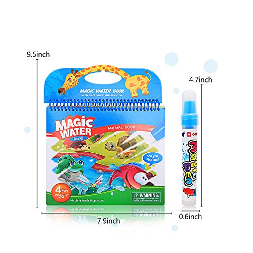 MIYUE Water Reveal Pad Paint Pens Set for Toddlers, Paint with Water Books for Toddlers, Magic Water Wow Coloring Books Animal Water Reveal Pad Paint Book for Boys & Girls Toddlers