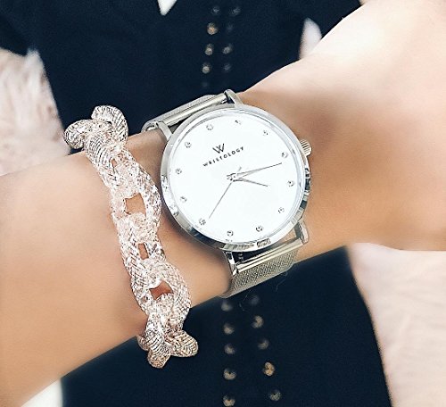 "The Olivia Womens chunky boyfriend watch by WRISTOLOGY is gorgeous and oh-so-dainty. She features an on-trend, super slim case in beautifully feminine silver, a blank white face embellished with a crystal time index, and a gorgeous metal mesh strap. She looks great and transitions from day to night like a pro.