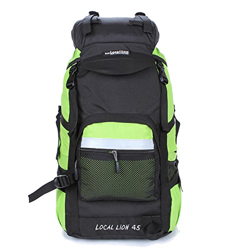 -. Feature : Features: Scientific design, reasonable structure, easy loading of items, bear comfortable relaxed, suitable for long journey. / This Backpack is made with high quality tear and water resistant material, waterproof, wearable, anti-fouling and lightweight. And with air drainage bear system, in line with ergonomic professional design for improve the comfort of the backpack. / Front structural analysis: 1.Dual zippered hip belt pockets 2.Side and Front Compression Straps: Provide optimal ability to secure the load 3.Top Compression/Sleeping Pad Straps: Helps hold Sleeping Pads 4.Dual mesh water bottle pockets 4.Top zip pockets and front zip mesh bag can put umbrellas, raincoats, cups and other small items 5. Bottom weaving hooks can hang small items / Back structural analysis: 1.Damping adjustable durable straps: Waist straps and all other straps use Oxford straps widening design, make the waist load-carrying capability more uniform 2. Dual zippered hip belt pockets 3. D-type buckle can be hanging kettle and another items, let you convenient to use 4. Air Mesh Back Panel£ºLarge air mesh back padding panels allow for airflow and comfort 5. Chest adjustment system: Can adjust the sliding buckle to adapt to different people's height / This back pack suitable for a variety environment, more versatile. The external dimensions is 50x 34x 24cm, 45L capacity. Because of the different measurement techniques, there may be 1 to 3cm error, which is a normal phenomenon.