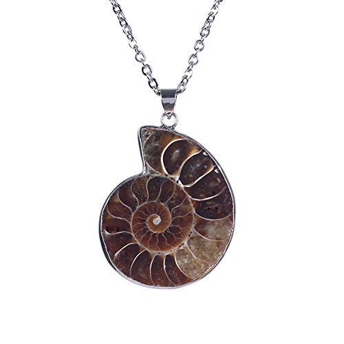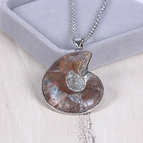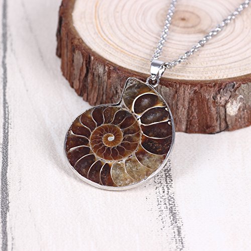 -. Title : Bonnie Stainless Steel Stone Pendant Necklace Extinct Natural Ammonite Shell Fossil - Madagascar
