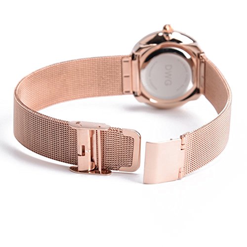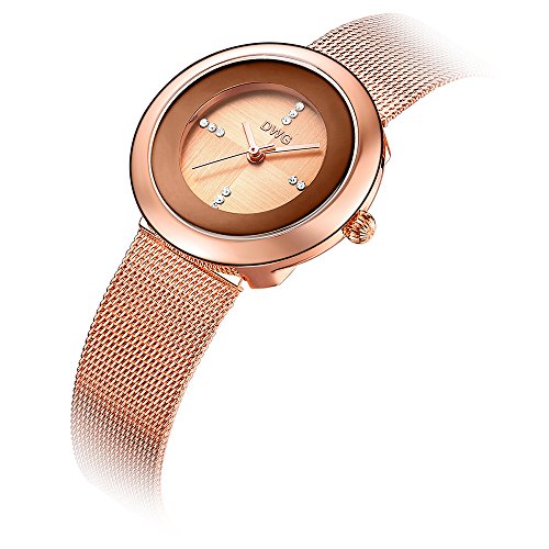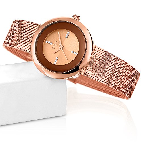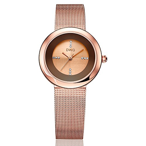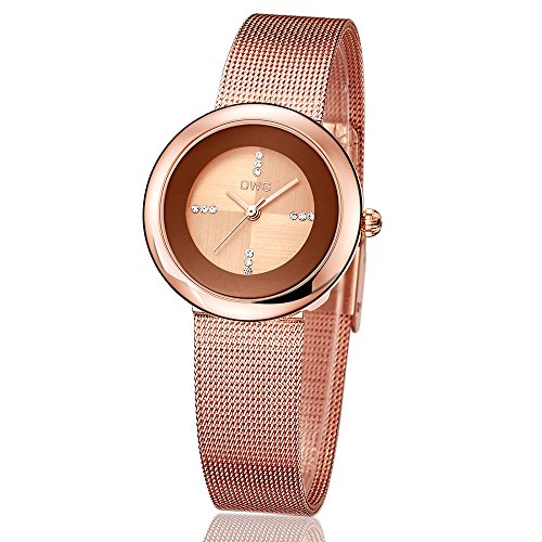 DWG Women Wrist Watch, Fashion Mesh Metal Strap Round dail with Analog Display Lady Watch