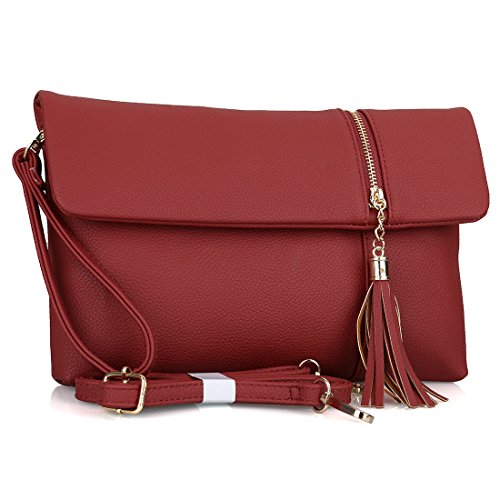 -. Feature : Magnetic snap & Zip top closure, keep your belonging safe and secure / Cute tassel decor in the flap, gold-tone hardware, Removable and adjustable wristlet and shoulder strap, thi elegant clutch purse can be carried in your hand, under your arm or cross body, your choice! / Classic fashion accessories that compliments any outfit from a day in the office to a night out in town. / The clutch bag come with an adjustbale shoulder strap.So you can use it as a clutch bag or shoulder bag. The fold over clutch has credit card holder, it can put 6 cards inside. / 100% MONEY BACK GUARANTEE - If you are not 100% satisfied with our product, we offer a 30-day money back guarantee and life time replacement for defective items, so what are you waiting for!