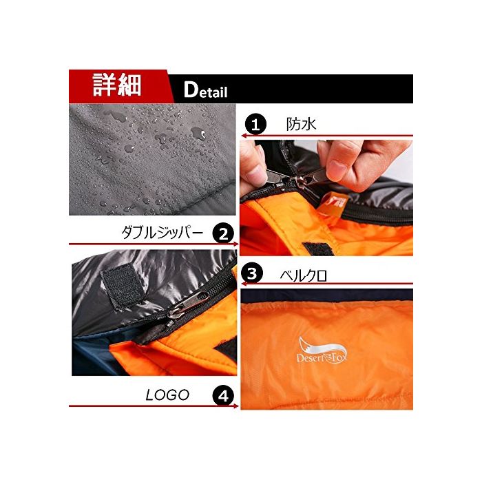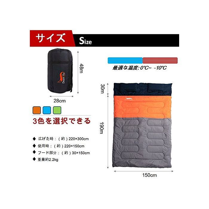 원본상품명:DesertFox 袋 封筒型 2人用 枕付き 量 解 連結可能 アウトドア 登山 車中泊 丸洗い 最低使用度0度 納袋付き