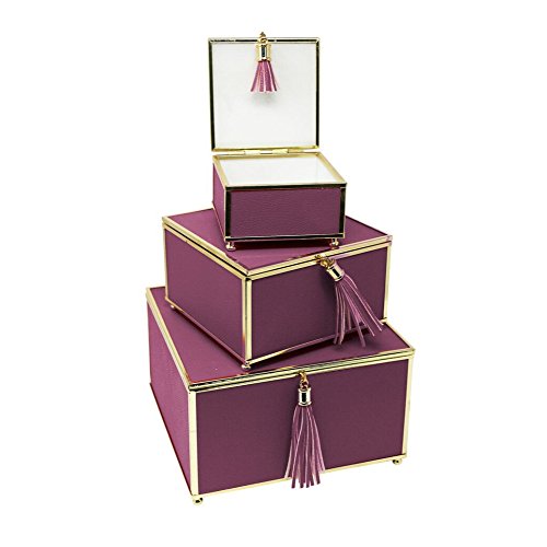 Benzara Excellent Purple Storage Boxes with Tassel Decorative (Set of 3)