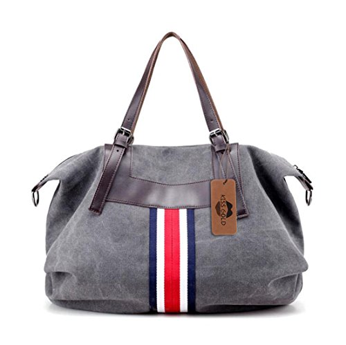 -. Feature : Made of soft and lightweight canvas, mixed with durable faux leather,the hobo handbag indicates a comeback of vintage and simple lifestyle; Top-handle Length: 8.6 Inch / The leisure weekend bag has plenty of room for your daily use. It can hold your purse, cellphone, ipad, cosmetics, umbrella, A4 magazine, water bottle, clothes and etc / With a removable shoulder strap, you carry it in three ways: tote, crossbody, and single shoulder / The European shoulder bag features colored stripe in the front. It is a perfect bag for working, traveling, school, and daily using / Approx Size: 19.7 in(L)X 9.0 in(W)X 17.7 in(H); Interior Structure: 2 open pouches for phone and cards, 1 side zip pocket, and 1 basic main pocket