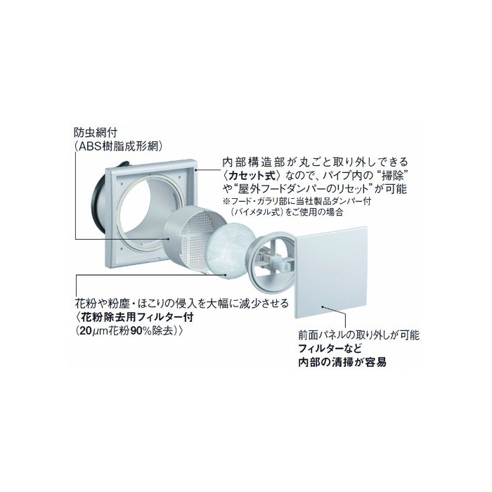 원본상품명:ナスタ 換口 角型プッシュ式レジスタ熱密閉型 KS-8641PRFK3 花粉除去用フィルタ付