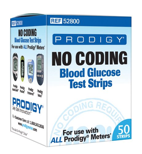 -. Title : Prodigy No Coding Blood Glucose Test Strips Bx/50 (Box of 50 Test Strips)