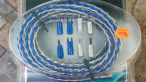 -. Feature : 30' Speaker Cable Kit / 14 Gauge OFC Wire / Braided, blue/silver / Includes 6 Each blue & sliver terminals (12 Total)