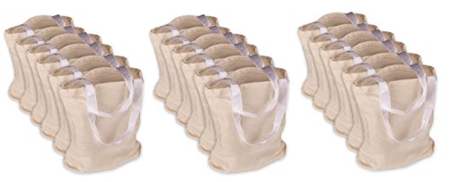 - 18-Pack Natural Color Cotton Canvas Tote Bags with Nylon Web Handles; Great Grocery Bag