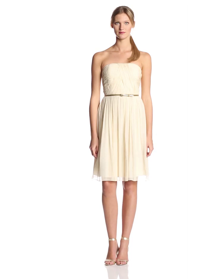 Strapless belted chiffon dress