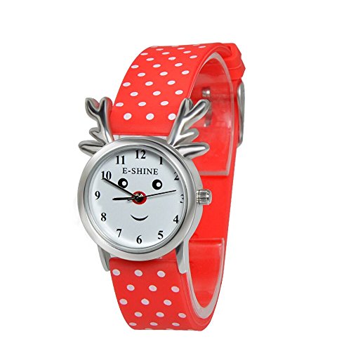 【아이에게 적합】이 손목시계는 아이,학생 등에 향해 귀여운인 특별히 커스터마이즈 하고 있는 손목시계입니다.사슴 상태의 문자판에,스마일의 얼굴도 넣(들이/수용하)고, 마치 나라(내량)가 《시》카 것 같 호감을 삽니다.상급으로 주목되는 은색을 사용해 나오고, 문자판에 다이아몬드를 붙여 반짝반짝이라고 빛나고, 언제나 활력으로 넘치는 아이로 절대 적합 하는 아이 시계의입니다.PU가죽 밴드이므로,아이가 젊어 부드러운 피부에 부담이 되지 않습니다.아이나 학생 등에 보내는 선물로서 좋은 선택입니다.