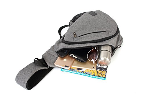-. Feature : Material: High quality tear-resistant durable nylon fabric / Two main zipper pocket, one front zipper pocket, one rear pocket and one side mesh pocket. This small crossbody bag can easily carry your A4 magazine, umbrella, wallets, ipad, water bottle and so on. / Shoulder Strap and back system: It has strong air mesh back panel quilted extra padded and shock-absorbing adjustable shoulder straps for maximum comfort. There is a glasses hanging bags on the shoulder strap. / Dimensions: 11.42" x 5.5" x 16.9 " (LxWxH) / Versatile: Wear on shoulder or chest for your preference. Good for daypack or travel use.