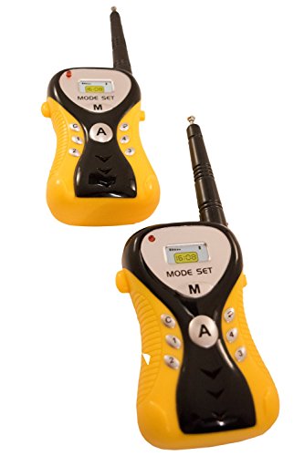 This set of handheld walkie talkie radios gives kids hours of fun time play in the yard and in the house.