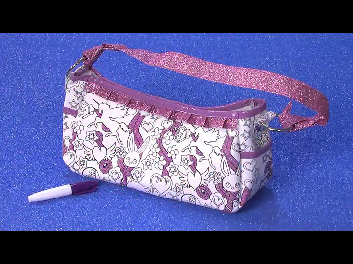 Cool black and white fashion bag with pink fringes and sparkle you can draw on to create a one-of-a-kind look